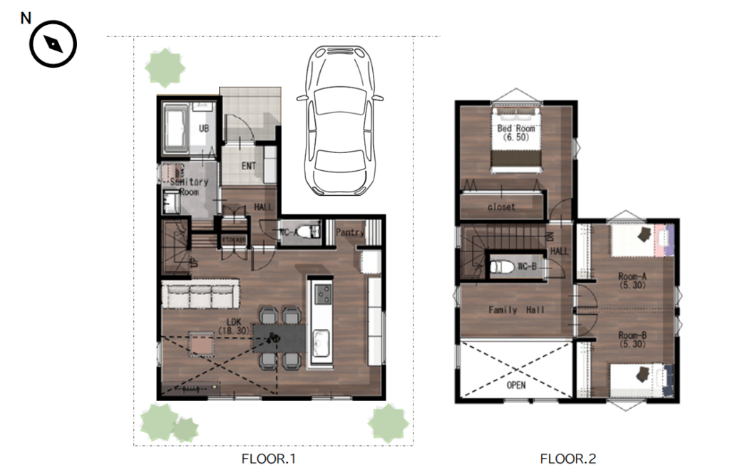 多目的に使えるファミリーホールや、将来2部屋に分けることのできる子ども部屋など、家族のライフスタイルの変化にも柔軟に対応できる設計。快適性・省エネ性・暮らしやすさを兼ね備えた住まいを、ぜひご覧ください。