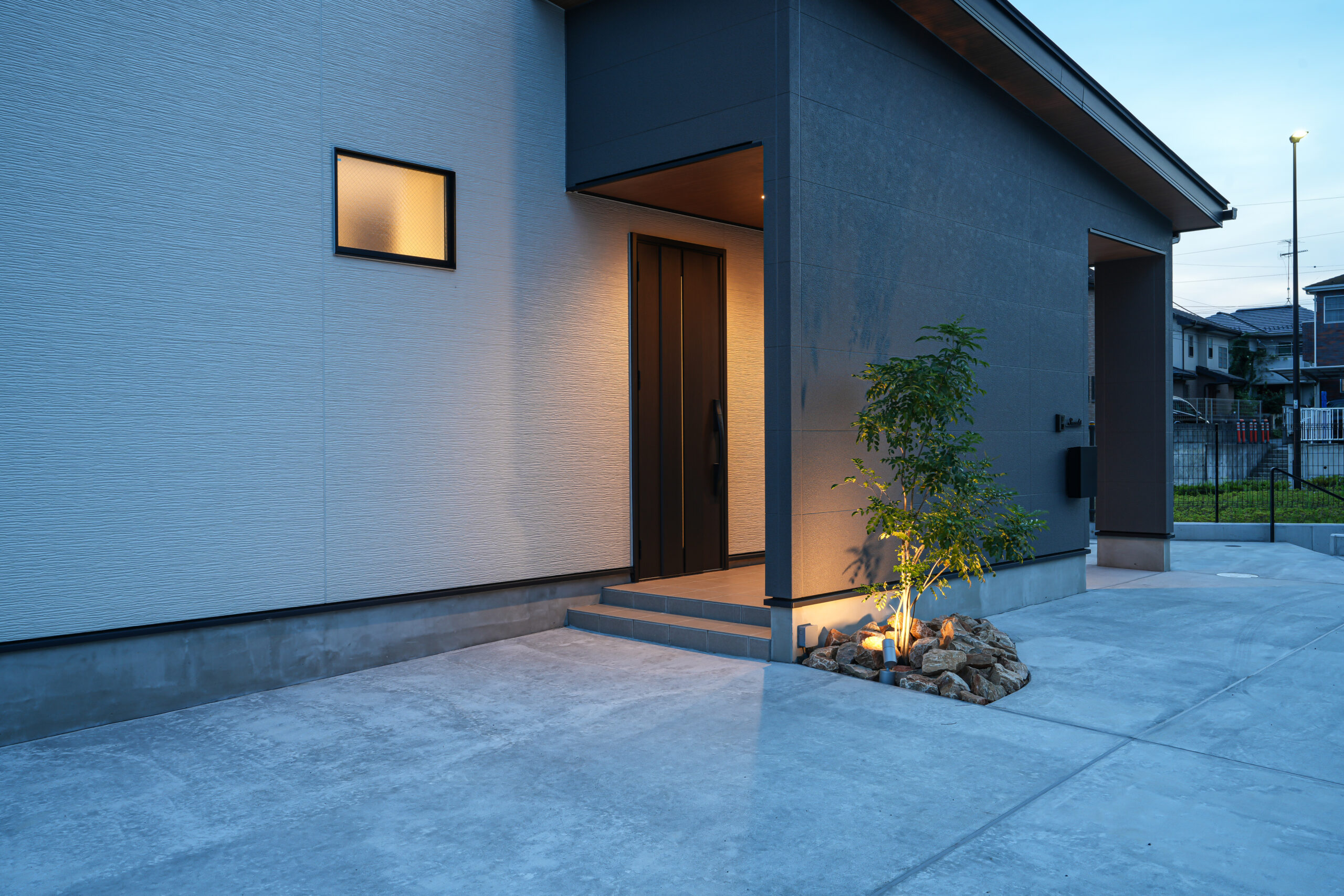 シンプルな色彩の中にも木目やシンボルツリーを植えてナチュラルにおしゃれな外観にしたい